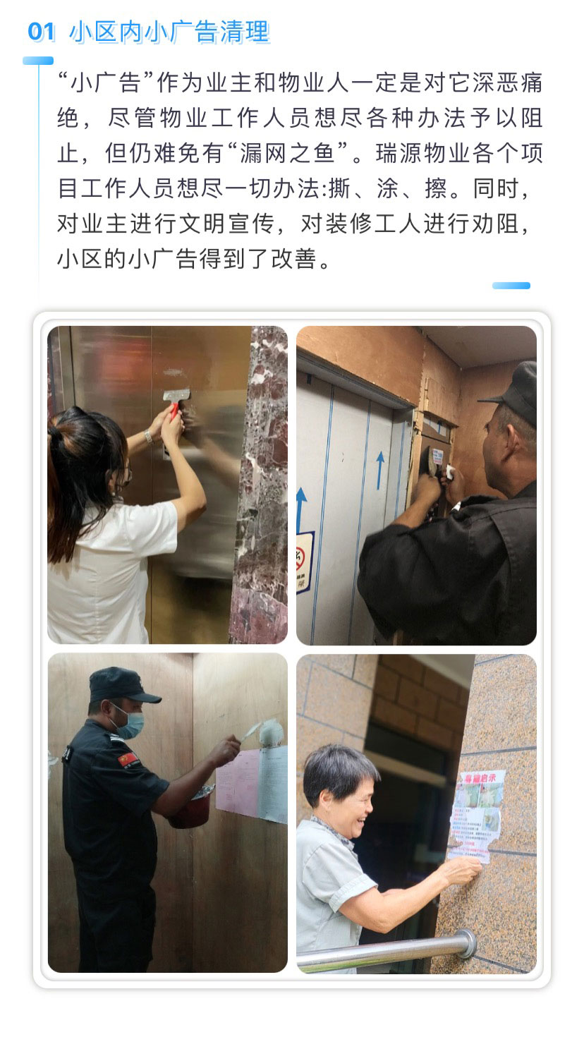以“小改變”,推動“大文明”。瑞源物業(yè)自開展文明城市創(chuàng)建行動以來,從墻上的標(biāo)語到身邊的變化,從抽象的概念到真切的感受。瑞源物業(yè)以創(chuàng)建文明城市為契機(jī),聚焦民生關(guān)切,嚴(yán)格按照文明城市創(chuàng)建的各項(xiàng)要求,積極整改,給業(yè)主帶來看得見、摸得著、感受得到的變化。